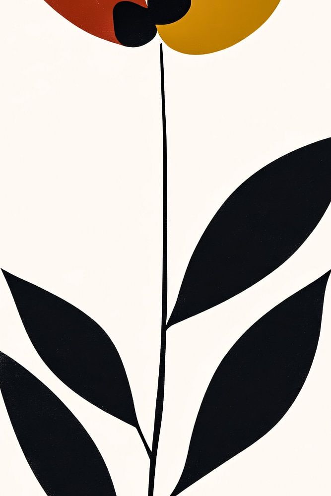 Dit unieke kunstwerk toont een minimalistische bloem met een slanke stengel en bladeren. De eenvoudige vormen en het gebruik van levendige kleuren zoals rood, geel en zwart creëren een prachtig contrast dat elke ruimte tot leven brengt. Het ontwerp straalt rust en elegantie uit, waardoor het perfect past in een moderne of minimalistische inrichting. Voeg een vleugje verfijning toe aan je huis met dit kunstwerk dat zowel subtiel als opvallend is. Ideaal voor de woonkamer of eetkamer, dit ontwerp biedt een tijdloze aantrekkingskracht.