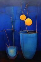 Creëer een serene sfeer in uw interieur met deze minimalistische print van een bloemenvaas. De ingetogen kleuren en strakke lijnen passen perfect in een moderne woonkamer of kantoor.