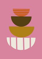 Minimalistische en abstracte organische vormen, hippe stijl. Halve cirkels boven elkaar gestapeld tegen een roze achtergrond. Hip en modern.