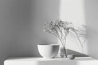 Dit zwart-witte kunstwerk belichaamt de essentie van minimalistische esthetiek. Een elegante vaas met een delicate tak staat centraal en wordt benadrukt door het slimme spel van licht en schaduw. De strakke lijnen en het gereduceerde kleurenpalet benadrukken de kalme en harmonieuze compositie en creëren een gevoel van sereniteit. Dit…