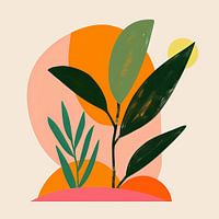 Dit schilderij combineert de eenvoud van minimalistische kunst met de schoonheid van de natuur. De strakke, geometrische vormen in warme oranje tinten en zacht groen creëren een harmonieuze compositie die zowel rustgevend als visueel aantrekkelijk is. Perfect voor kunstliefhebbers die moderne en abstracte kunst waarderen en tegelijkertijd een band met de natuur zoeken. Dit kunstwerk voegt een stijlvol en tijdloos accent toe aan elke kamer.
