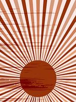 Een stralende zon met symmetrische stralen in terracotta en gedempte bruine tinten vormt het middelpunt van deze retro-geïnspireerde poster. De eenvoud van de vorm, verzacht met textuur overlays, maakt dit stuk een elegant eerbetoon aan mid-century design. Het warme palet voegt een gezellige gloed toe, waardoor het perfect is voor interieurs met aardetinten en een boho-gevoel. Of je nu een galeriemuur inricht of op zoek bent naar een gedurfd maar zacht solo-object, dit zonovergoten ontwerp brengt licht en balans in je ruimte.