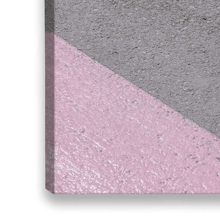 Het grijze asfalt in combinatie met de strakke schuine vlakken van het roze zebrapad zorgen voor een esthetisch en abstracte foto.