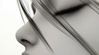 Deze afbeelding toont een minimalistisch en etherisch portret in profiel van een vrouw met gesloten ogen en vloeiend donker haar. Het beeld is sterk gestileerd, bijna sculpturaal, met gladde, onberispelijke oppervlakken die doen denken aan digitale kunst of 3D-weergave. De huidtinten zijn licht en neutraal, wat de…