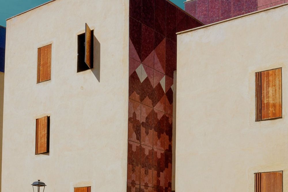 Nadat we de medina van Fes met zijn wirwar aan steegjes even achter ons hadden gelaten kwamen we als grote tegenstelling deze huizenblokken tegen. Zo kronkelend en onoverzichtelijk als het in de medina is zo rechttoe-rechtaan was het op deze plek. Het is bijna een stilleven zo.