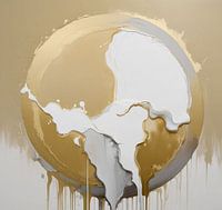 Moderne abstract minimalisme cirkel gevuld met verf aardetinten , goud, beige, wit op een bruin beige achtergrond.