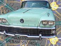 Vintage Kunstwerk. Van een foto van een mintgroene Retro Oldtimer Buick.