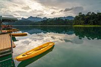 A perfect mirror at Elephant Hills Rainforest Camp on the Ratchaprapha Lake.