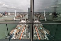 Reflectie van Rotterdam in de gevel van de World Port Center, op de 35e etage