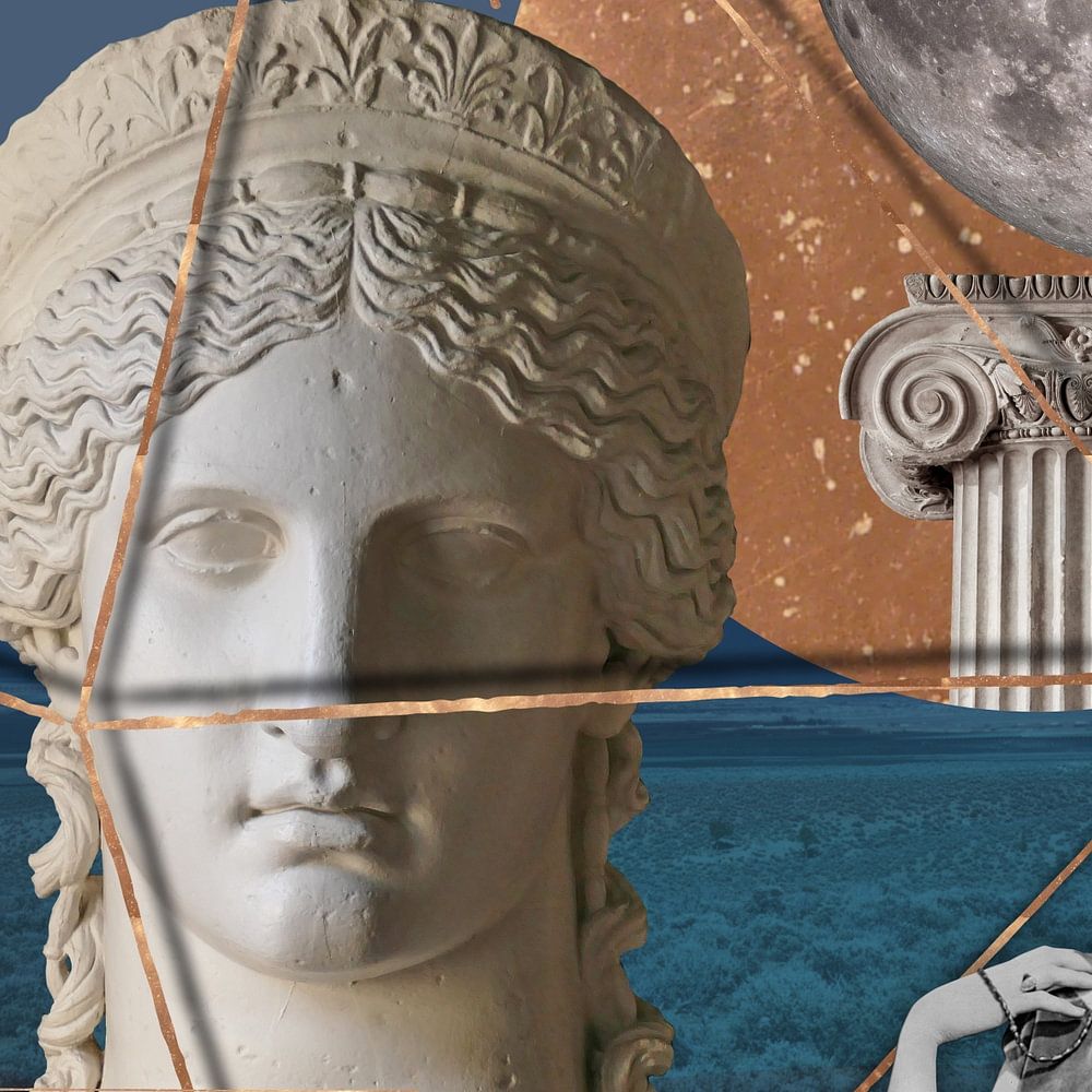 Het hoofd van de godin Juno is het middelpunt van de collage. De "Miss" in de titel is nogal dubbelzinnig en zou kunnen verwijzen naar de jonge vrouw op de voorgrond, maar zou ook kunnen worden opgevat als vermist.