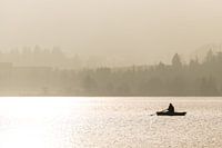 Mist en achtergrondverlichting bij Hopfensee, Allgäu, Duitsland