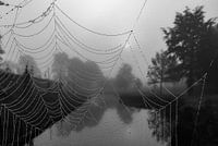 Op een vroege mistige morgen, kwam ik dit spinnenweb tegen. Hij hing daar met dauwdruppels als een prachtig sieraad te stralen aan een brug met een zachte mistige achtergrond als decor. De natuur is een kunstenaar.