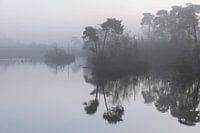 Op een stille ochtend ligt de wereld verscholen onder een zachte laag mist. Het water van het ven is bijna onbeweeglijk en weerspiegelt de bomen als een ingetogen schilderij. Geluid lijkt hier te verdwijnen, vormen vervagen en alles komt tot rust.