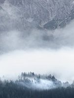 Deze foto laat een berglandschap in de Alpen zien, gehuld in mist. Ik nam hem in de nazomer in de buurt van het Hochkönigmassief in Oostenrijk.