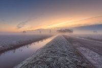 Zonsopkomst met mist in de polder bij Amersfoort.