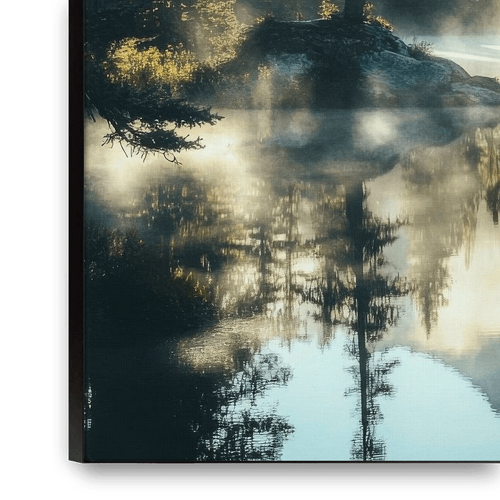 Zonnestralen dansen door een mystieke mist over het spiegelgladde wateroppervlak, terwijl majestueuze sparren beschermend rond een rustig meer staan gegroepeerd. Een bergreus troont op de achtergrond, zijn top steekt trots de lucht in, en het rustige landschap nodigt je uit om te dromen en te blijven hangen. Een verborgen paradijs waar…
