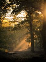 De zon is op en probeert de mist de verdrijven in de bossen rondom de Hatertse vennen.De ochtend stond heeft goud in de mond was deze keer zeker waar! De gouden kleuren geven een warme gloed over dit mooie natuurgebied. De Hatertse vennen op het mooist. Dit natuurgebied bij Nijmegen is een geliefde plek om de zonsopkomst te fotograferen. Aan het einde van de zomer begint de heide paars te bloeien, wat het landschap een mooie gloed geeft.Hatertse en Overasseltse Vennen is een vennengebied van ca. 520 hectare in de gemeentes Heumen en Wijchen, provincie Gelderland. Het gebied bestaat uit zo'n twintig benoemde vennen en het omliggende rivierduin-, heide- en bosgebied. Het gebied ligt ten zuidwesten van Nijmegen. Ooit is dit gebied, ten zuidwesten van Nijmegen, ontstaan door de Waal en de Maas. Inmiddels liggen beide rivieren hier een eind vandaan, maar door de rivierklei die ze achtergelaten hebben kun je nu genieten van de ruim 20 vennen.