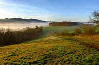 Mist in de vallei langs het wandelpad in Monreal (Duitsland)