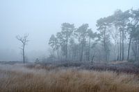 Een mistige winter ochtend op natuurgebied Tenhaagdoornheide in Houthalen-Helchteren (België).
