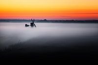 Mist is best lastig te fotograferen want je lichtmeter schiet alle kanten op en de focus ligt vaak net op de verkeerde delen. Deze foto ben ik wel heel blij mee ook omdat de zon net onder gaat en er een prachtige oranje gloed in de lucht hangt. Ik vind dit een prachtplaat!
