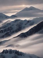 Altijd al digitale kunst van mist op de flanken van bergen als wanddecoratie willen hebben?