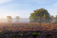 Een prachtige ochtend op de Westerheide met mist. De mist was nog zichtbaar dichtbij de grond. De hei stond nog prachtig in bloei op deze ochtend begin september