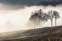 Uniek omstandigheden op de Gulperberg waar de warme ochtendzon de mistdeken van de helling verdrijft.