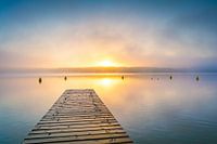 steiger aan het meer bij zonsopgang met mist - Mecklenburgische Seenplatte