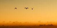 's Morgens vroeg erop uit in de polder met de camera loont altijd. Mooie zachte kleuren en als je het treft is het nog mistig ook! Dit is een stukje landschap in de Alblasserwaard. Mooi stukje Holland ! Drie opvliegende ganzen en wat koeien in de mist maken het beeld compleet. Morgenstond heeft goud in de mond ! Goed voor een mooi panorama !!