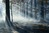 Mistig Bos met Zonnestralen en Schaduwen van Imperial Art House