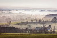 Panorama van het Zuid-Limburgse Heuvelland bij Epen, In de verte het treinviaduct van het Belgische Moresnet.