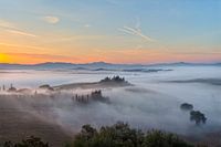 Prachtige omgeving van Val d'Orcia tijdens de mist