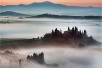 Prachtige omgeving van Val d'Orcia tijdens de mist