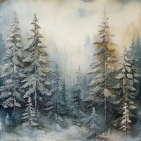 Een mistig winters bos. Breng de warmte van kerst in jouw huis met dit charmante werk!