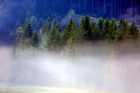 Nevelslierten drijven door het Zwarte Woud op een zonnige herfstochtend in november ....