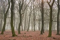Mistig beukenbos in de ochtend op de laatste dag van februari bij Elspeet op de Veluwe