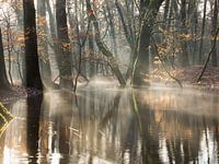 Een mistig, ondergelopen herfst bos tijdens een winters gouden uurtje! leuvenumse beek en Hierdese beek! Heerlijke ochtend dauw geeft een magische sfeertje aan het bos!