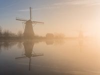 Koop de foto Mistig gouden uurtje bij de molens van Kinderdijk van Jeroen de Jongh Fotografie op canvas, aluminium dibond, (ingelijste) fotoprint, behang en ArtFrame, op maat geprint in Fine-Art kwaliteit.