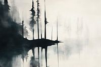 Een mysterieus spel van licht en schaduw ontvouwt zich in dit landschap, waar slanke, elegante boomstammen majestueus oprijzen uit de mist en het zachte wateroppervlak weerspiegelen. Dit mystieke landschap geeft elke kamer een kalme, meditatieve sfeer - perfect voor de slaapkamer of een inspirerend kantoor.