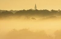 Tijdens een mistige ochtend in de Amsterdamse Waterleiding Duinen dit sfeervolle beeld kunnen vastleggen vanaf een hoge berg met in de achtergrond een kerktoren.
