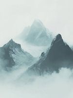 Een sereen en krachtig berglandschap gehuld in mistige stilte. Dit kunstwerk straalt rust en majesteit uit met zijn koele kleurenpalet van ijsblauw en grijs. De minimalistische benadering en de bijna etherische sfeer maken dit schilderij een perfecte keuze voor interieurs die balans, ruimte en natuurlijke schoonheid willen uitstralen. Ideaal voor liefhebbers van natuur, eenvoud en contemplatie.