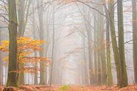 Mistige herfstochtend in beukenbos van Francis Dost