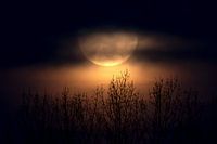 Een mistige maansopkomst in Chezelle, Frankrijk.