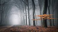 Het einde van het najaar nadert en de winter staat voor de deur. Blad zit amper nog aan de bomen. Een enkele beuk laat nog wat kleur zien op deze mistige morgen in het bos bij Hoog Buurloo.