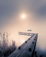 De foto is genomen op een mistige ochtend in februari. Uit de mist kwam per toeval een roeibootje aangevaren die het beeld voor mij compleet maakte.