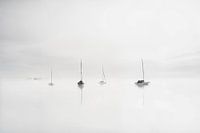 Zeilboten op de Ammersee bij zonsopgang in de mist