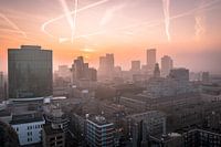 Mistige zonsondergang vanaf de Laurenskerk Rotterdam