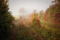 Prahtige diffuse herfstkleuren op de weide voor het Eyserbos in het Zuid-Limburgse Heuvelland (Nederland).