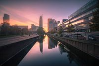 Zonsopkomst met nevel bij de skyline van Den Haag