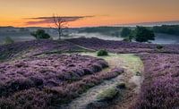 Mooi uitzicht op De Posbank bij Rheden tijdens zonsopkomst met laaghangende nevel.
